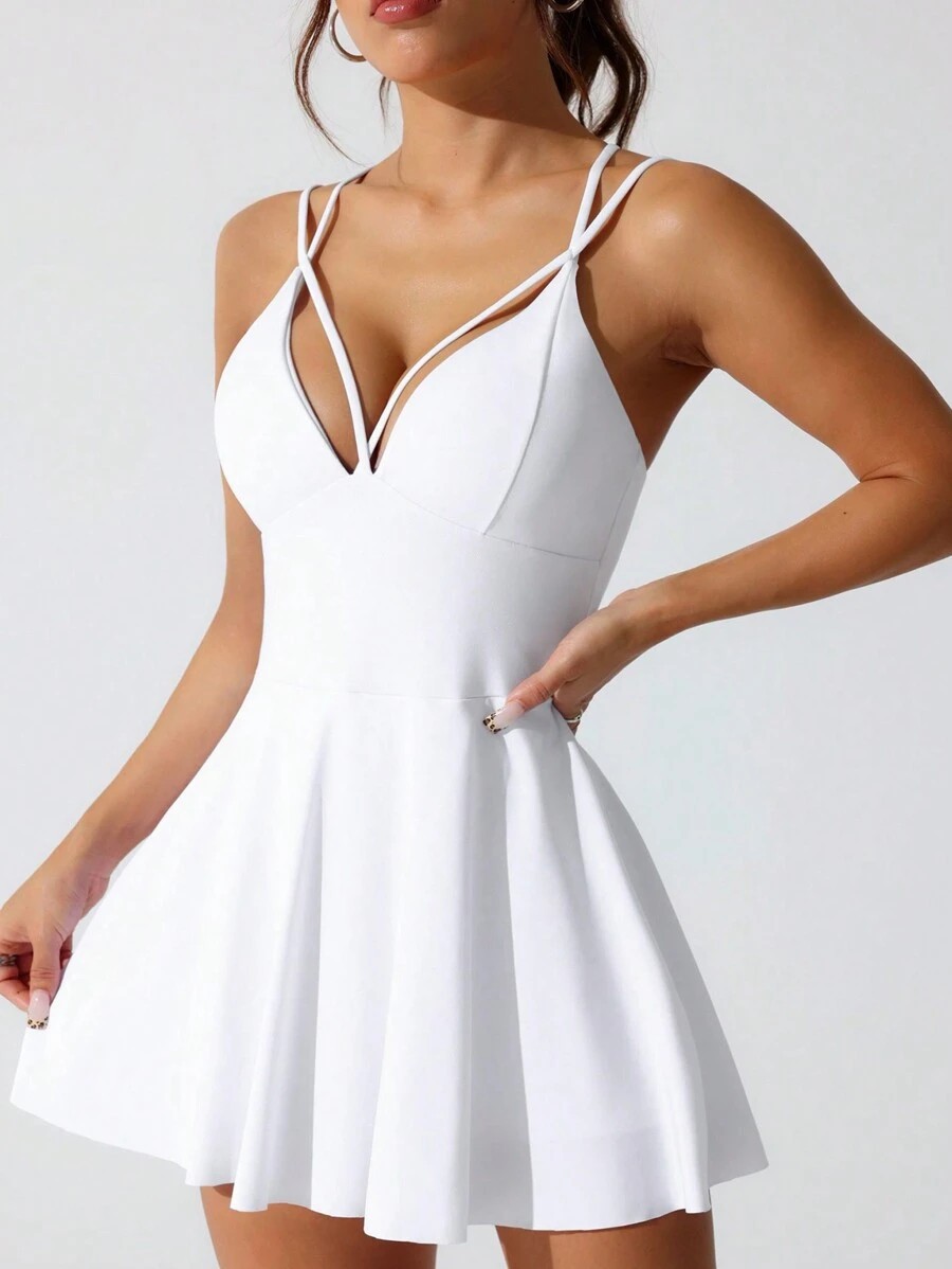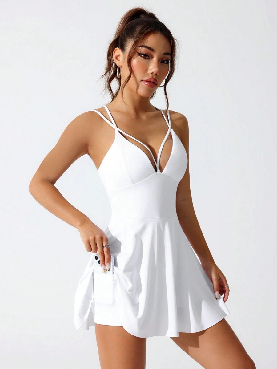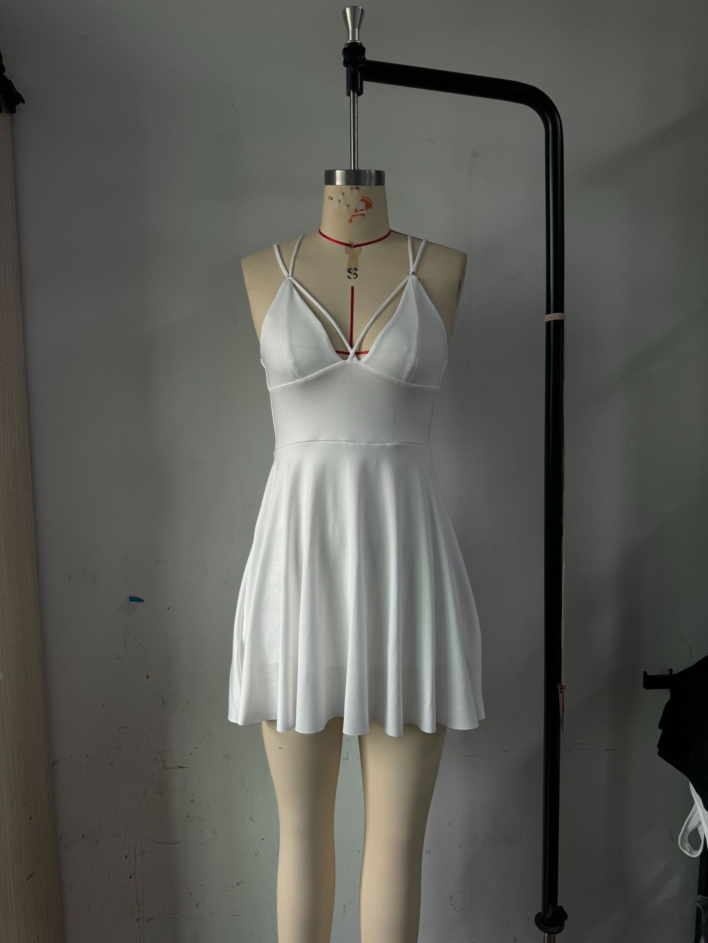 Short-shoulder jacket + tie + bra + detachable straps + strappy skirt + T pants X1